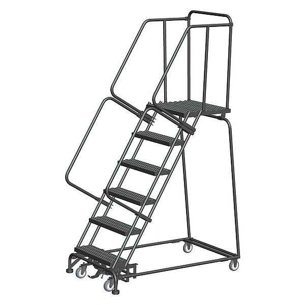 93 in H Steel Rolling Ladder, 6 StepsSKU G4509307Categories Material HandlingDescription Rolling Ladder, Material Steel, Platform Height 60 in, Handrails Included Yes, Handrail Height 30 in, Overall Height 93 in, Number of Steps 6, Assembled, Load Capacity 450 lb, Step Tread Serrated, Platform Depth 14 in, Platform Width 24 in, Bottom Width 32 in, Base Depth 49 in, Overall Width 32 in, Climbing Angle 59 Degrees , Step Depth 7 in, Step Width 24 in, Ladder Actuation Weight Activated Step Lock, Finish Powder Coated, Color Gray, Standards ANSI, OSHA, Manufacturers Warranty Length 1 yrgraingerSKU: 41LF23, mscSKU: , zoro_no: G4509307, mongo_id: 65bbe7859a749db82274001a
