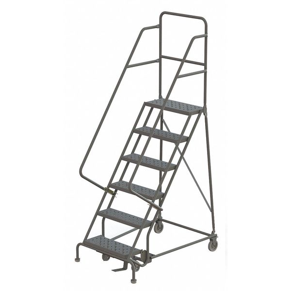 93 in H Steel Rolling Ladder, 6 StepsSKU G4509289Categories Material HandlingDescription Rolling Ladder, Material Steel, Platform Height 60 in, Handrails Included Yes, Handrail Height 30 in, Overall Height 93 in, Number of Steps 6, Assembled, Load Capacity 450 lb, Step Tread Perforated, Platform Depth 14 in, Platform Width 24 in, Bottom Width 32 in, Base Depth 49 in, Overall Width 32 in, Climbing Angle 59 Degrees , Step Depth 7 in, Step Width 24 in, Ladder Actuation Weight Activated Step Lock, Finish Powder Coated, Color Gray, Standards ANSI, OSHA, Manufacturers Warranty Length 1 yrgraingerSKU: 41LF25, mscSKU: , zoro_no: G4509289, mongo_id: 65bbe7859a749db822740023