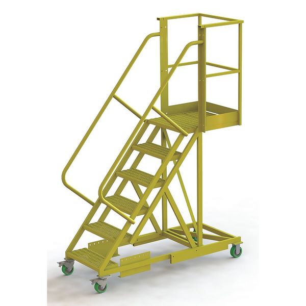 SKU G9958191Categories Material HandlingDescription Supported, Cantilever Rolling Ladder, Material Steel, Unassembled, Handrails Included Yes, Platform Height 60 in, Platform Width 24 in, Platform Depth 20 in, Overall Height 102 in, Load Capacity 300 lb, Handrail Height 42 in, Bottom Width 41 in, Base Depth 72 in, Number of Steps 6, Climbing Angle 50 Degrees , Ladder Actuation Locking Casters, Step Depth 10 in, Step Width 24 in, Step Tread Serrated, Finish Powder Coated, Color Yellow, Standards OSHA 1910.29 and ANSI A14.7graingerSKU: 15E954, mscSKU: , zoro_no: G9958191, mongo_id: 65bbe7859a749db822740006