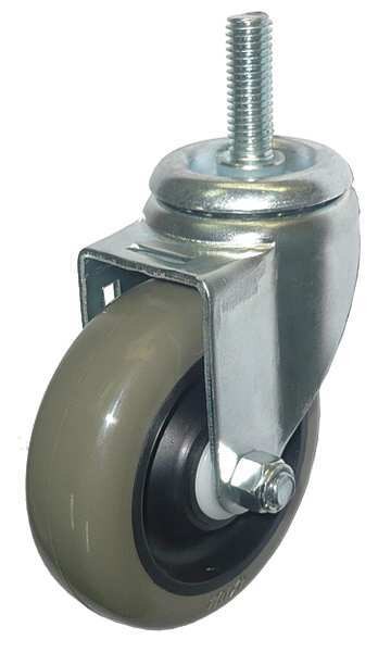 Swivel Stem Caster, Poly, 4 in, 275 lb, GrySKU G8485136Categories Material HandlingDescription NSF-Listed Sanitary Threaded Stem Caster, Swivel Caster, 275 lb Load Rating, 0 to 299 lb, 4 in Wheel Dia., 1 1/4 in Wheel Width, Polyurethane Wheel/Tread Material, 5 in Mounting Height, Delrin, 1/2 In.-13 x 1-1/2 in Caster Stem Size, Threaded, Steel Caster Frame Material, Zinc Plated Frame Finish, Yes Non-Marking, 1 Number of Wheels$15.36 / eachWeb price