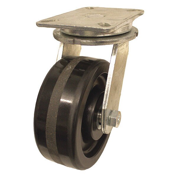 Plate Caster, Swivel, Nylon, 8 in., 6500 lb., Blk
