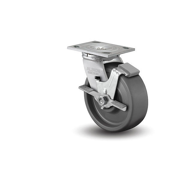 6" X 2" Non-Marking Elastomer Swivel Caster, Face Brake, Loads Up To 1100