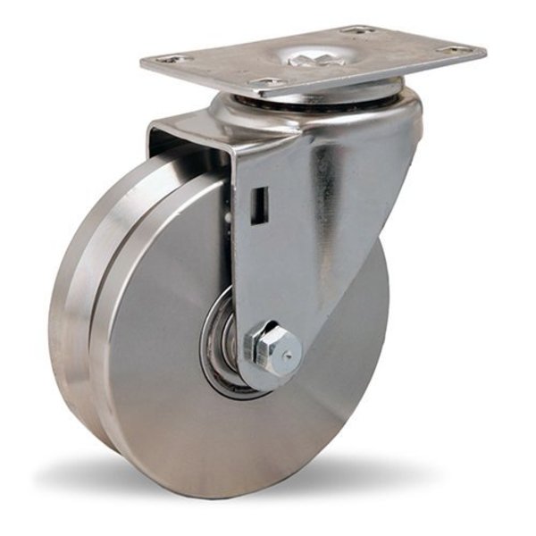Stainless Steel Swivel Caster, 4" x 1 3/8" Stainless Steel V-Grooved Wheel