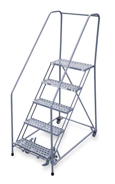 SKU G9928983Categories Material HandlingDescription Rolling Ladder, Material Steel, Platform Height 50 in, Handrails Included Yes, Handrail Height 30 in, Overall Height 80 in, Number of Steps 5, Assembled, Load Capacity 450 lb, Step Tread Perforated, Platform Depth 24 in, Platform Width 24 in, Bottom Width 30 in, Base Depth 63 in, Overall Width 30 in, Climbing Angle 50 Degrees , Step Depth 7 in, Step Width 24 in, Ladder Actuation Foot Activated Step Lock, Finish Powder Coated, Color Gray, Standards ANSI, OSHA, Includes 1 in Crutch TipsgraingerSKU: 20Z483, mscSKU: , zoro_no: G9928983, mongo_id: 65bbe7643aaddbd5a909137d