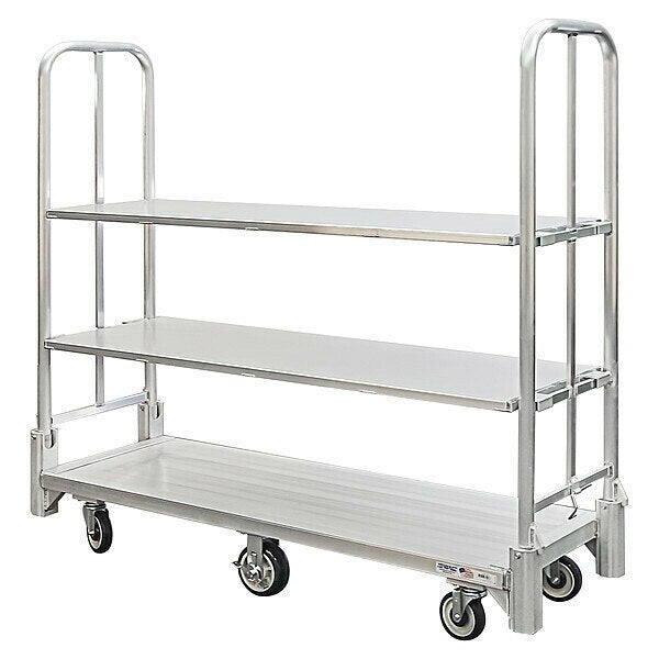 SKU G810396918Categories Material HandlingDescription Platform Truck, Load Capacity 1,500 lb, Overall Height 64 3/4 in, Overall Length 67 3/4 in, Overall Width 20 in, Deck Construction Solid, Deck Material Aluminum, Deck Gauge 13 ga, Deck Height 62 in, Deck Length 20 in, Deck Surface Smooth, Number of Platforms 2$1,473.74 / eachWeb price