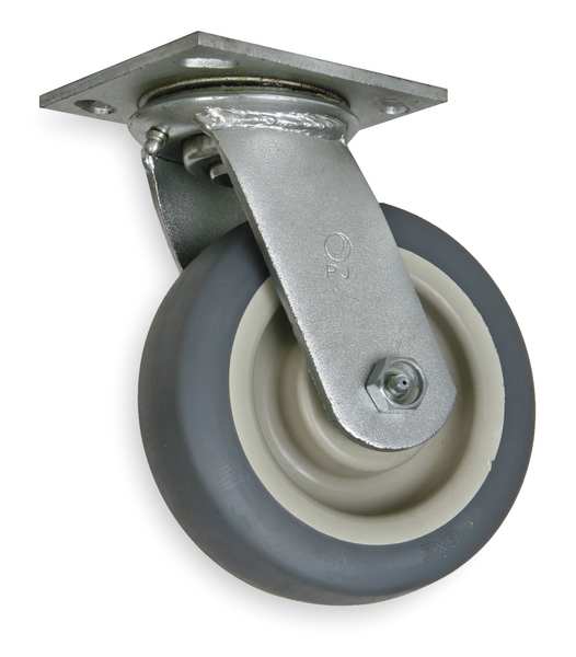 Swivel Plate Caster, Therm Rubber, 6 in, 450 lb, Gry