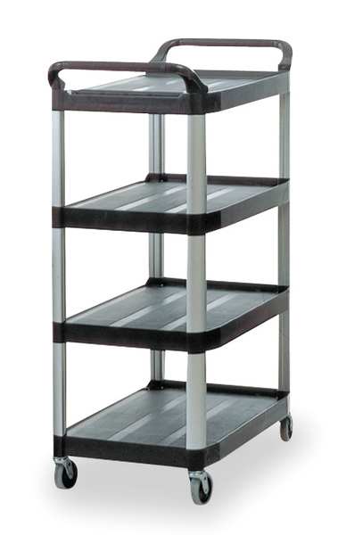 Plastic Dual-Handle Utility Cart with Lipped Plastic Shelves, (2) Raised, 4 Shelves, 300 lbSKU G3257791Categories Material HandlingDescription Dual-Handle Utility Cart with Lipped Plastic Shelves, Number of Shelves 4, Lip Style 4-Sided Lipped, Load Capacity 300 lb, Shelf Length 29 1/4 in, Shelf Width 20 in, Top Shelf Height 51 in, Distance Between Shelves 11 3/4 in, Handle Type (2) Raised, Handle Height 49 5/8 in, Caster Brake Type No Brake Included, Caster Wheel/Tread Material Elastomer, Caster Wheel Dia. 4 in, Caster/Wheel Configuration (4) Swivel, Lip Height 1 ingraingerSKU: 4YX44, mscSKU: , zoro_no: G3257791, mongo_id: 65bbe7353aaddbd5a907fcbc