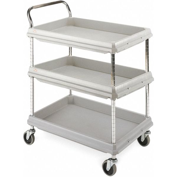 Thermoplastic Resin Utility Cart with Lipped Plastic Shelves, Flat, 3 Shelves, 300 lb