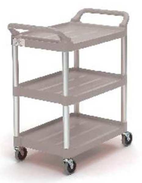 Thermoplastic Resin Utility Cart with Lipped Plastic Shelves, Flat, 3 Shelves, 300 lbSKU G7683112Categories Material HandlingDescription Utility Cart with Lipped Plastic Shelves, Number of Shelves 3, Lip Style 4-Sided Lipped, Load Capacity 300 lb, Shelf Length 24 in, Shelf Width 18 in, Top Shelf Height 34 in, Distance Between Shelves 9 1/2 in, 16 1/2 in, Distance Between Top and Middle Shelf 9 1/2 in, Distance Between Middle and Bottom Shelf 16 1/2 in, Handle Type Flat, Handle Height 34 in, Caster Brake Type Side Pedal Brake, Caster Wheel/Tread Material Thermoplastic Rubber, Caster Wheel Dia. 4 in$159.74 / eachWeb price -