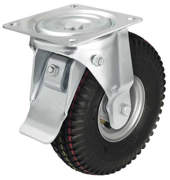 SKU G4568995Categories Material HandlingDescription Plate Caster with Pneumatic Wheels, Load Rating Range 300 to 999 lb, Load Rating 550 lb, Tread Diamond, Wheel Dia. 10 1/4 in, Wheel Width 3 3/8 in, Inside Bolt Hole Spacing 5-1/2 in x 5-1/2 in, Outside Bolt Hole Spacing 5-1/2 in x 5-1/2 in, Caster Brake Type Total Lock Brake, Caster Product Group Swivel Caster with Total Lock, Caster Sub-Type Swivel, Non-Marking No, Wheel/Tread Material Rubber, Tire Rim Dia. 5 in, Tire Thickness 2 1/2 in, Frame Finish Zinc Plated, Swivel Raceway Type Double Ball$245.24 / eachWeb price
