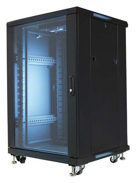 SKU G8911454Categories Material HandlingDescription Equipment Rack Enclosure, Product Type Rack Enclosure, Color Black, Features Adjustable Front and Rear Rails, Reversible Tempered Glass Front Door, Finish Powder Coated, Material Steel, Mounting Location Floor, Overall Height 39 in, Overall Width 23 5/8 in, Overall Depth 23 5/8 in, Overall Load Capacity 1,000 lb, Rack Units 18, Includes Casters, Door, Fans, Leveling FeetgraingerSKU: 33RT60, mscSKU: , zoro_no: G8911454, mongo_id: 65bbe7323aaddbd5a907ee62