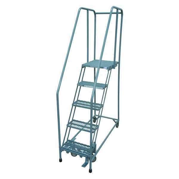 80 in H Steel Tilt and Roll Ladder, 5 StepsSKU G9885836Categories Material HandlingDescription Tilt and Roll Ladder, Material Steel, Platform Height 50 in, Handrails Included Yes, Handrail Height 30 in, Overall Height 80 in, Number of Steps 5, Assembled, Load Capacity 450 lb, Step Tread Perforated, Platform Depth 10 in, Platform Width 24 in, Bottom Width 28 in, Base Depth 43 in, Overall Width 28 in, Climbing Angle 59 Degrees , Step Depth 7 in, Step Width 24 in, Ladder Actuation None, Finish Powder Coated, Color Gray, Standards ANSI, OSHA, Includes 2-1/2 in Rubber Pads, Rear Exit NograingerSKU: 3FMD8, mscSKU: , zoro_no: G9885836, mongo_id: 65bbe75b9a749db822731b12