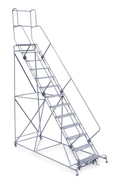 SKU G9929166Categories Material HandlingDescription Rolling Ladder, Material Steel, Platform Height 130 in, Handrails Included Yes, Handrail Height 42 in, Overall Height 172 in, Number of Steps 13, Unassembled, Load Capacity 800 lb, Step Tread Perforated, Platform Depth 24 in, Platform Width 24 in, Bottom Width 42 in, Base Depth 137 in, Overall Width 42 in, Climbing Angle 50 Degrees , Step Depth 7 in, Step Width 24 in, Ladder Actuation Foot Activated Step Lock, Finish Powder Coated, Color Gray, Standards ANSI, OSHA, Includes 2-1/2 in Rubber PadsgraingerSKU: 20Z465, mscSKU: , zoro_no: G9929166, mongo_id: 65bbe75b9a749db822731b1e