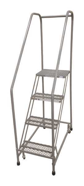 70 in H Steel Rolling Ladder, 4 StepsSKU G0997626Categories Material HandlingDescription Rolling Ladder, Material Steel, Platform Height 40 in, Handrails Included Yes, Handrail Height 30 in, Overall Height 70 in, Number of Steps 4, Assembled, Load Capacity 450 lb, Step Tread Serrated, Platform Depth 12 in, Platform Width 30 in, Bottom Width 32 in, Base Depth 40 in, Overall Width 32 in, Climbing Angle 50 Degrees , Step Depth 7 in, Step Width 30 in, Ladder Actuation Weight Activated Step Lock, Finish Powder Coated, Color Gray, Standards ANSI, OSHA, Rear Exit NograingerSKU: 21UV10, mscSKU: , zoro_no: G0997626, mongo_id: 65bbe75b9a749db822731b00