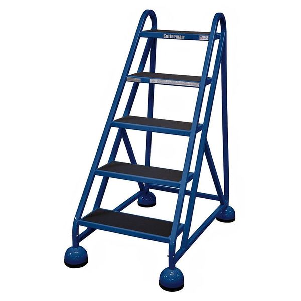 49 in H Steel Rolling Ladder, 5 StepsSKU G2125107Categories Material HandlingDescription Rolling Ladder, Material Steel, Platform Height 45 in, Handrails Included No, Overall Height 49 in, Number of Steps 5, Assembled, Load Capacity 450 lb, Step Tread Antislip Vinyl, Platform Depth 14 in, Platform Width 16 in, Bottom Width 26 in, Base Depth 46 in, Overall Width 26 in, Climbing Angle 59 Degrees , Step Depth 8 in, Step Width 16 in, Ladder Actuation Weight Activated Step Lock, Finish Powder Coated, Color Blue, Standards ANSI, OSHA, Rear Exit NograingerSKU: 6MXJ7, mscSKU: , zoro_no: G2125107, mongo_id: 65bbe75b9a749db822731b09