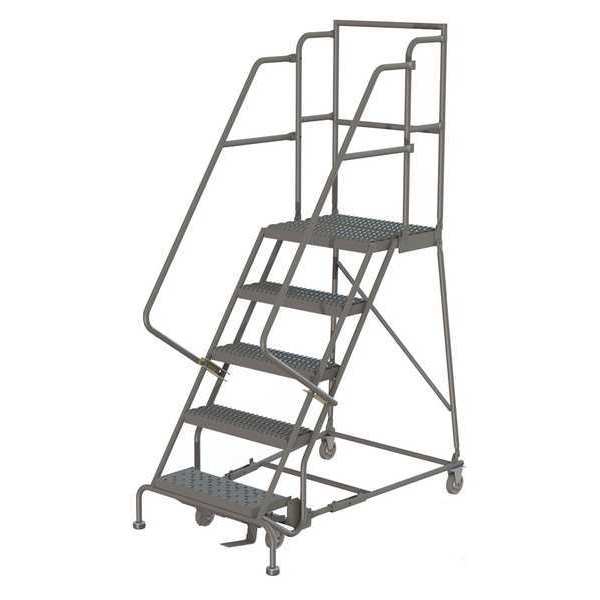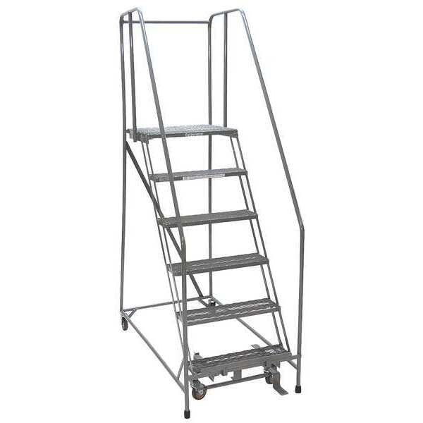 SKU G9863061Categories Material HandlingDescription Rolling Ladder, Material Steel, Platform Height 60 in, Handrails Included Yes, Handrail Height 30 in, Overall Height 90 in, Number of Steps 6, Assembled, Load Capacity 450 lb, Step Tread Serrated, Platform Depth 20 in, Platform Width 24 in, Bottom Width 30 in, Base Depth 56 in, Overall Width 30 in, Climbing Angle 59 Degrees , Step Depth 7 in, Step Width 24 in, Ladder Actuation Foot Activated Step Lock, Finish Powder Coated, Color Gray, Standards ANSI, OSHA, Includes Crutch Tips, Rear Exit NograingerSKU: 5FYX3, mscSKU: , zoro_no: G9863061, mongo_id: 65bbe75b9a749db822731b3a
