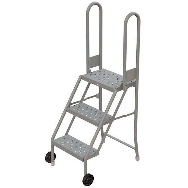 54 in H Steel Tilt and Roll Ladder, 3 StepsSKU G3518532Categories Material HandlingDescription Tilt and Roll Ladder, Material Steel, Platform Height 30 in, Handrails Included Yes, Handrail Height 24 in, Overall Height 54 in, Number of Steps 3, Unassembled, Load Capacity 300 lb, Step Tread Perforated, Platform Depth 10 in, Platform Width 16 in, Bottom Width 21 in, Base Depth 27 in, Overall Width 21 in, Climbing Angle 56 Degrees , Step Depth 7 in, Step Width 16 in, Ladder Actuation None, Finish Powder Coated, Color Gray, Standards ANSI, OSHA, Includes Crutch TipsgraingerSKU: 4RCT5, mscSKU: , zoro_no: G3518532, mongo_id: 65bbe75b9a749db822731ae6