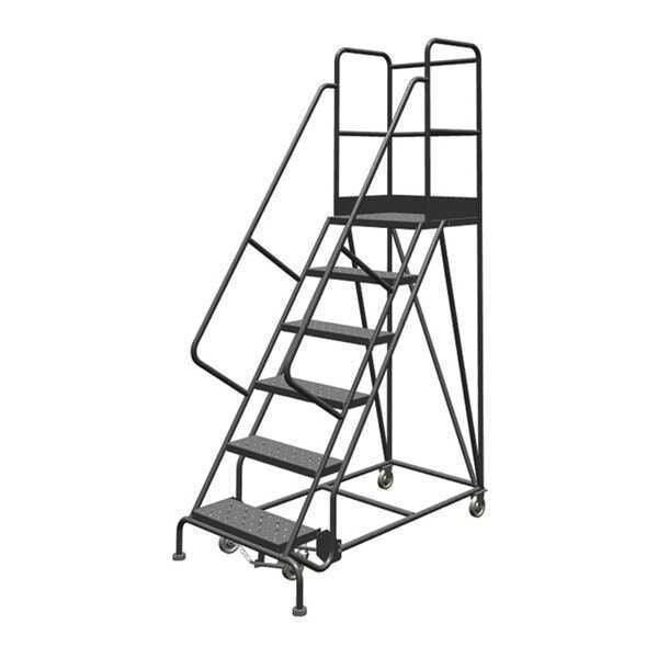 96 in H Steel Rolling Ladder, 6 StepsSKU G0639269Categories Material HandlingDescription Rolling Ladder, Material Steel, Platform Height 60 in, Handrails Included Yes, Handrail Height 36 in, Overall Height 96 in, Number of Steps 6, Unassembled, Load Capacity 450 lb, Step Tread Perforated, Platform Depth 10 in, Platform Width 16 in, Bottom Width 27 in, Base Depth 50 in, Overall Width 27 in, Climbing Angle 56 Degrees , Step Depth 7 in, Step Width 16 in, Ladder Actuation Foot Activated Step Lock, Finish Powder Coated, Color Gray, Standards ANSI, OSHA, Includes 2-1/2 in Rubber PadsgraingerSKU: 25NW63, mscSKU: , zoro_no: G0639269, mongo_id: 65bbe75b9a749db822731ad3