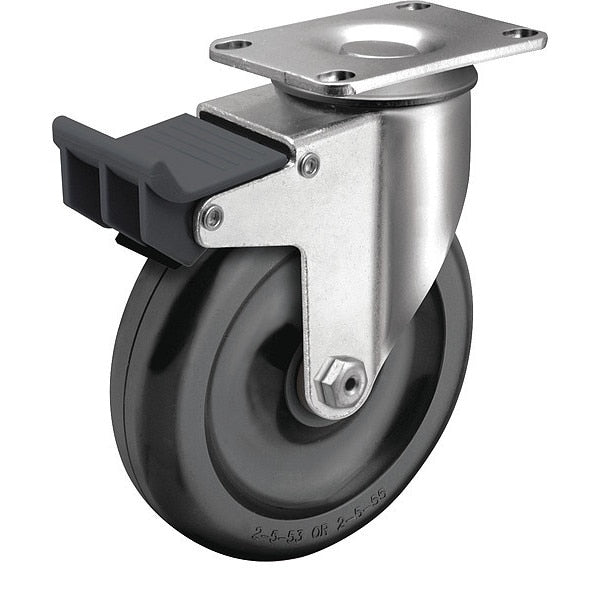 4" X 1-1/4" Non-Marking Polyolefin Swivel Caster, Top Lock Brake, Loads Up To 275 lb