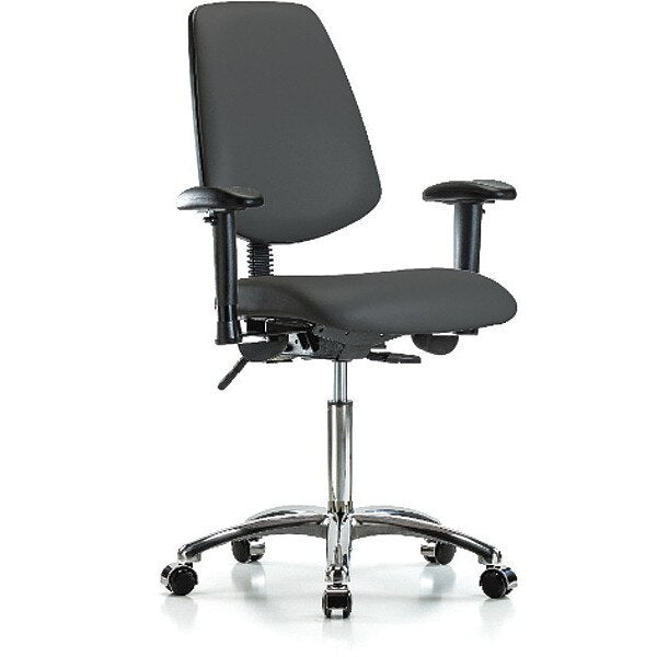 Bench Chair, Vinyl, Med, Bk, Cast, Gry, Caster Type: Rolling