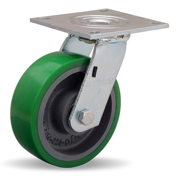 Medium Service Swivel Caster, 6" x 2" Duralast Polyurethane (95A) on Cast Iron Wheels