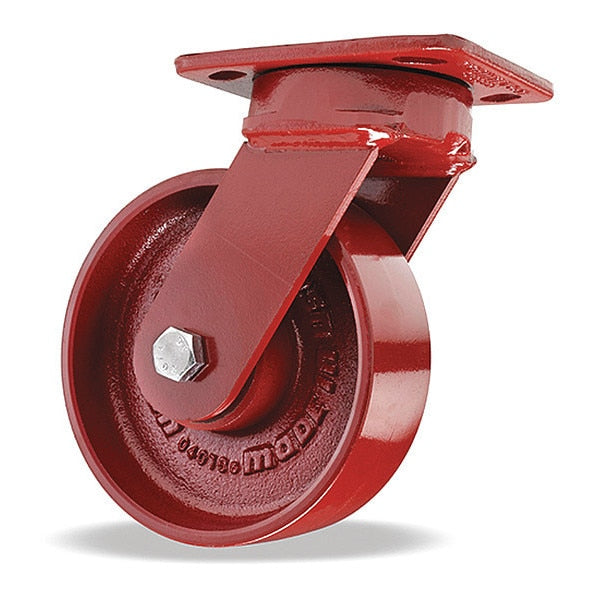 Kingpinless Swivel Caster, 6" x 2" Cast Iron Metal Wheel, 1/2" Sealed Precision Ball Bearings