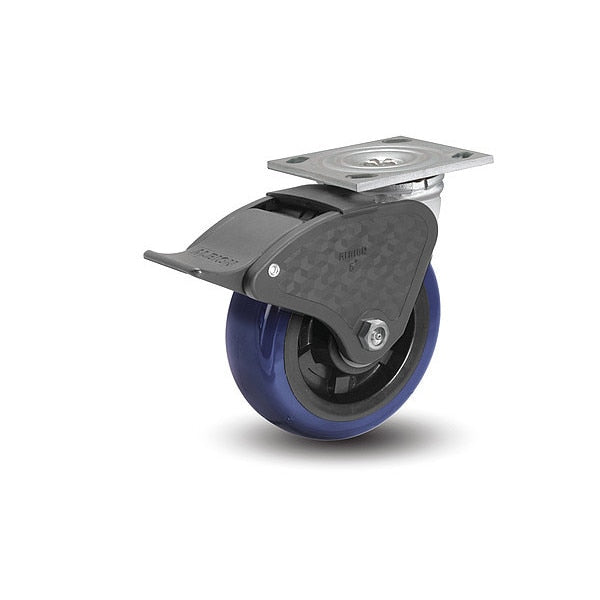4" X 2" Non-Marking Polyurethane Premium Swivel Caster, Total Lock Brake, Loads Up To 600 lb
