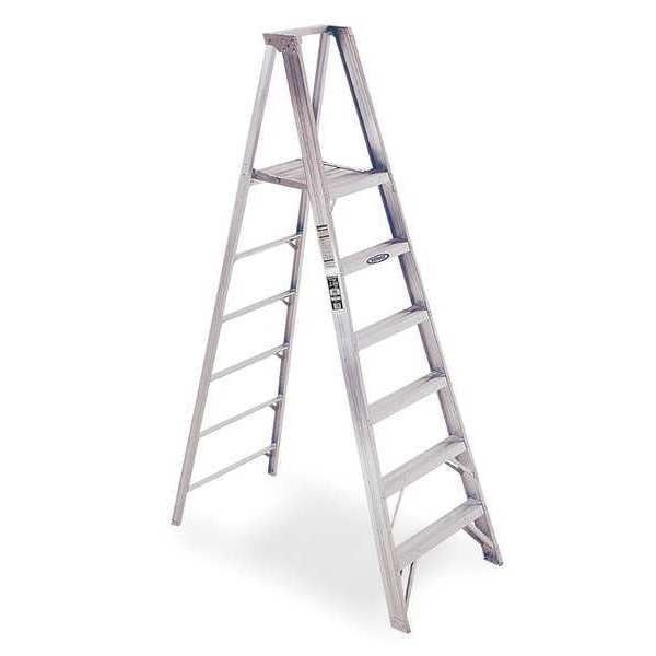 SKU G3117931Categories Material HandlingDescription Platform Stepladder, Ladder Height 8 ft, Platform Width 16 in, Platform Depth 15 in, Platform Height 6 ft, Load Capacity 375 lb, Bottom Width 28 in, Base Spread 55 in, Material Aluminum, Series P400, Number of Steps 6, Step Depth 3 in, Step Tread Ribbed, Rung/Step Spacing 12 in, ANSI Type IAA, Includes A Safety Guard Rail, Large Platform, Slip Resistant Foot Pads, Slip Resistant Traction Tred Steps, Standards ANSI, Net Weight 35 lbgraingerSKU: 6W687, mscSKU: , zoro_no: G3117931, mongo_id: 65bbe73d3aaddbd5a9082ed2