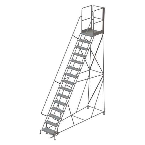 SKU G3374117Categories Material HandlingDescription Rolling Ladder, Material Steel, Platform Height 150 in, Handrails Included Yes, Handrail Height 42 in, Overall Height 192 in, Number of Steps 15, Unassembled, Load Capacity 450 lb, Step Tread Perforated, Platform Depth 30 in, Platform Width 24 in, Bottom Width 40 in, Base Depth 130 in, Overall Width 40 in, Climbing Angle 56 Degrees , Step Depth 7 in, Step Width 24 in, Ladder Actuation Foot Activated Step Lock, Finish Powder Coated, Color Gray, Standards ANSI, OSHA, Includes Rear-Exit GategraingerSKU: 45FF64, mscSKU: , zoro_no: G3374117, mongo_id: 65bbe73d3aaddbd5a9082ef9