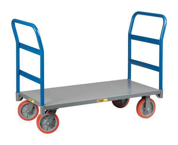 Twin Handle Platform Truck, 3600 lb.SKU G2147656Categories Material HandlingDescription Dual-Handle Steel-Deck Platform Truck, Load Capacity 3,600 lb, Overall Height 40 in, Overall Length 76 in, Overall Width 30 in, Deck Construction Solid, Deck Material Steel, Deck Finish/Coating Powder Coated, Deck Gauge 12 ga, Deck Height 11 in, Deck Length 72 in, Deck Width 30 in, Deck Surface Smooth, Frame Material Steel, Frame Finish/Coating Powder Coated, Handle Type (2) Removable Raised, Lip Style Flush, Side Panel Type No Side Panels, Number of Platforms 1, Color Blue, GraygraingerSKU: 49Y620, mscSKU: , zoro_no: G2147656, mongo_id: 65bbe73c3aaddbd5a90829a0