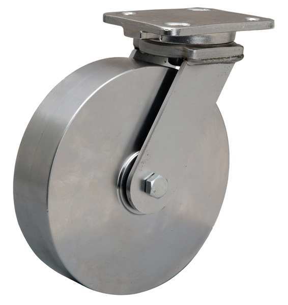Plate Caster, Swivel, SS, 8 in., 1600 lb., Slvr