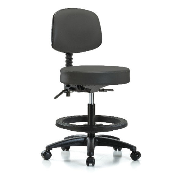 Bench Stool, Med, Vin, Bk, BF, Casters, Gry