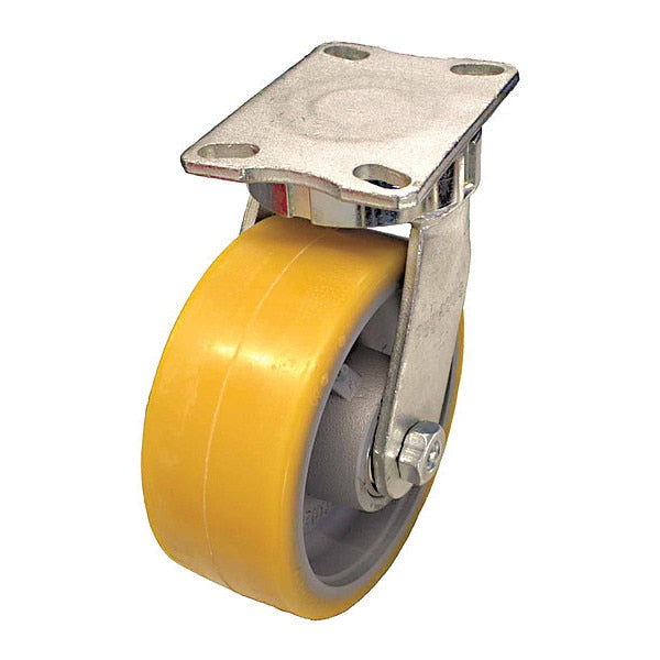 Plate Caster, 3970 lb. Load, Yellow WheelSKU G5590757Categories Material HandlingDescription Swivel, Kingpinless Plate Caster, Load Rating 3950 lb, Swivel Lock Type No Lock Included, Wheel Dia. 9 15/16 in, Wheel Width 3 1/4 in, Wheel/Tread Material Polyurethane, Wheel Core Material Cast Iron, Non-Marking Yes, Number of Wheels 1, Caster Brake Type No Brake Included, Tread Shape Standard$386.99 / eachWeb price -