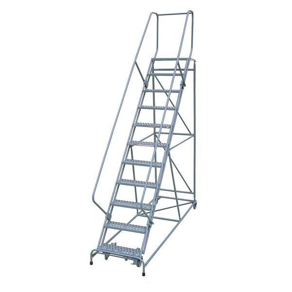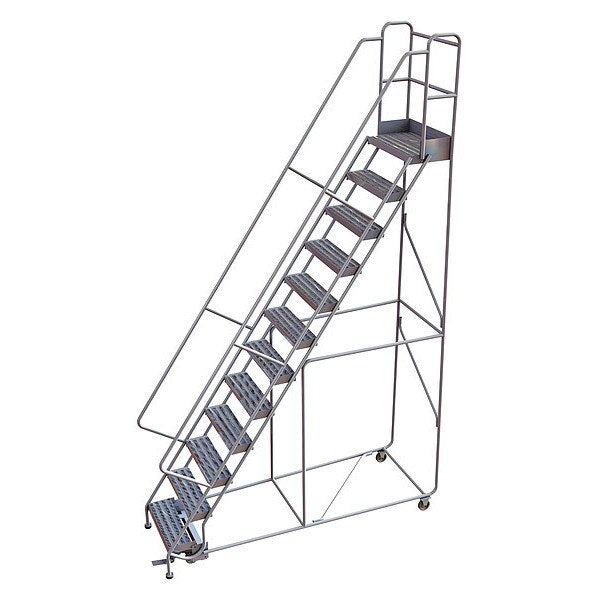 140 in H Steel Rolling Ladder, 11 StepsSKU G2156257Categories Material HandlingDescription Rolling Ladder, Material Steel, Platform Height 110 in, Handrails Included Yes, Handrail Height 30 in, Overall Height 140 in, Number of Steps 11, Unassembled, Load Capacity 450 lb, Step Tread Perforated, Platform Depth 24 in, Platform Width 24 in, Bottom Width 32 in, Base Depth 118 in, Overall Width 32 in, Climbing Angle 50 Degrees , Step Depth 7 in, Step Width 24 in, Ladder Actuation Foot Activated Step Lock, Finish Powder Coated, Color Gray, Standards ANSI, OSHAgraingerSKU: 45CJ03, mscSKU: , zoro_no: G2156257, mongo_id: 65bbee24526e052139af0aa8