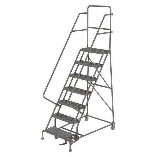 SKU G0979198Categories Material HandlingDescription Rolling Ladder, Material Steel, Platform Height 70 in, Handrails Included Yes, Handrail Height 36 in, Overall Height 106 in, Number of Steps 7, Unassembled, Load Capacity 450 lb, Step Tread Serrated, Platform Depth 10 in, Platform Width 16 in, Bottom Width 27 in, Base Depth 57 in, Overall Width 27 in, Climbing Angle 56 Degrees , Step Depth 7 in, Step Width 16 in, Ladder Actuation Foot Activated Step Lock, Finish Powder Coated, Color Gray, Standards ANSI, OSHA, Includes 2-1/2 in Rubber PadsgraingerSKU: 25NW68, mscSKU: , zoro_no: G0979198, mongo_id: 65bbee24526e052139af0a56