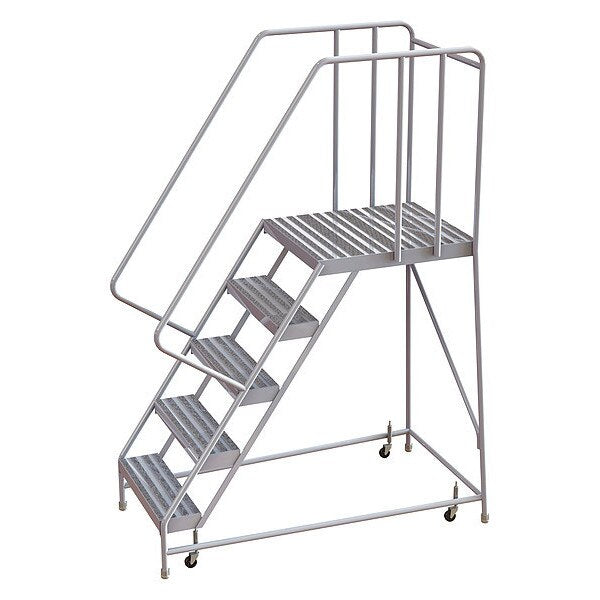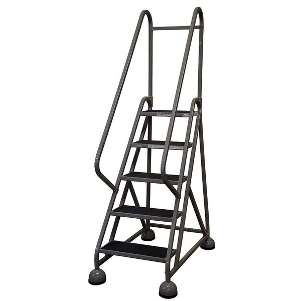 80 in H Steel Rolling Ladder, 5 StepsSKU G0998159Categories Material HandlingDescription Rolling Ladder, Material Steel, Platform Height 50 in, Handrails Included Yes, Handrail Height 30 in, Overall Height 80 in, Number of Steps 5, Unassembled, Load Capacity 450 lb, Step Tread Serrated, Platform Depth 20 in, Platform Width 24 in, Bottom Width 30 in, Base Depth 86 in, Overall Width 30 in, Climbing Angle 59 Degrees , Step Depth 7 in, Step Width 24 in, Ladder Actuation Foot Activated Step Lock, Finish Powder Coated, Color Gray, Standards ANSI, OSHA, Rear Exit NograingerSKU: 21UW27, mscSKU: , zoro_no: G0998159, mongo_id: 65bbee24526e052139af0a85