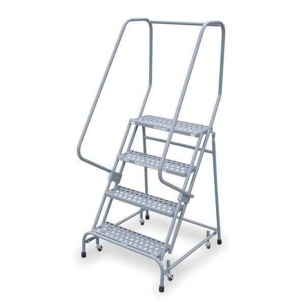 70 in H Steel Rolling Ladder, 4 StepsSKU G0638998Categories Material HandlingDescription Rolling Ladder, Material Steel, Platform Height 40 in, Handrails Included Yes, Handrail Height 30 in, Overall Height 70 in, Number of Steps 4, Unassembled, Load Capacity 450 lb, Step Tread Serrated, Platform Depth 20 in, Platform Width 30 in, Bottom Width 33 in, Base Depth 57 in, Overall Width 32 in, Climbing Angle 59 Degrees , Step Depth 7 in, Step Width 30 in, Ladder Actuation Foot Activated Step Lock, Finish Powder Coated, Color Gray, Standards ANSI, OSHA, Rear Exit NograingerSKU: 21UW05, mscSKU: , zoro_no: G0638998, mongo_id: 65bbee24526e052139af0a99