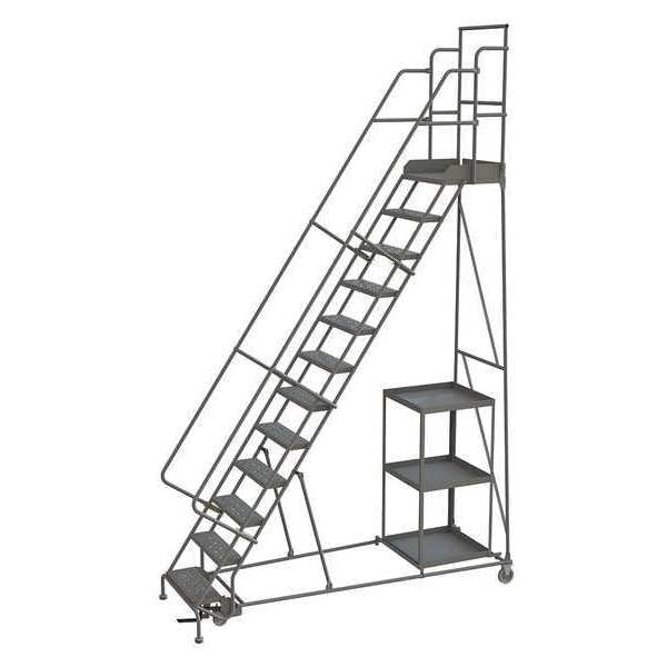 156 in H Steel Stock Picking Rolling Ladder, 12 StepsSKU G2470170Categories Material HandlingDescription Stock Picking Rolling Ladder, Material Steel, Platform Height 120 in, Handrails Included Yes, Handrail Height 36 in, Overall Height 156 in, Number of Steps 12, Unassembled, Load Capacity 450 lb, Step Tread Serrated, Platform Depth 20 in, Platform Width 24 in, Bottom Width 35 in, Base Depth 99 in, Overall Width 35 in, Climbing Angle 56 Degrees , Step Depth 7 in, Step Width 24 in, Ladder Actuation Foot Activated Step Lock, Finish Powder Coated, Color Gray, Standards ANSI, OSHAgraingerSKU: 45FG36, mscSKU: , zoro_no: G2470170, mongo_id: 65bbee24526e052139af0a4c
