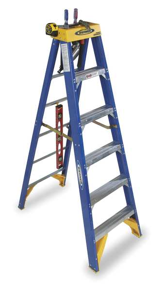 6 ft Fiberglass StepladderSKU G2379641Categories Material HandlingDescription Stepladder, Material Fiberglass, ANSI Type IAA, Ladder Height 6 ft, Load Capacity 375 lb, Number of Steps 5, Base Spread 41 1/4 in, Bottom Width 23 3/8 in, Step Depth 3 in, Step Tread Ribbed, Series OBCN00, Includes MagnaGrip and Tool Lasso(TM) Sockets, Rung/Step Spacing 12 ingraingerSKU: 1YME1, mscSKU: , zoro_no: G2379641, mongo_id: 65bbee24526e052139af0a2e