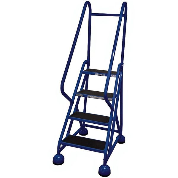 SKU G9805512Categories Material HandlingDescription Rolling Ladder, Material Steel, Platform Height 36 in, Handrails Included Yes, Handrail Height 30 in, Overall Height 66 in, Number of Steps 4, Unassembled, Load Capacity 450 lb, Step Tread Antislip Vinyl, Platform Depth 8 in, Platform Width 16 in, Bottom Width 25 in, Base Depth 34 in, Overall Width 25 in, Climbing Angle 59 Degrees , Step Depth 8 in, Step Width 16 in, Ladder Actuation Weight Activated Step Lock, Finish Powder Coated, Color Blue, Standards ANSI, OSHA, Includes Double HandrailsgraingerSKU: 9NV68, mscSKU: , zoro_no: G9805512, mongo_id: 65bbee24526e052139af0aad