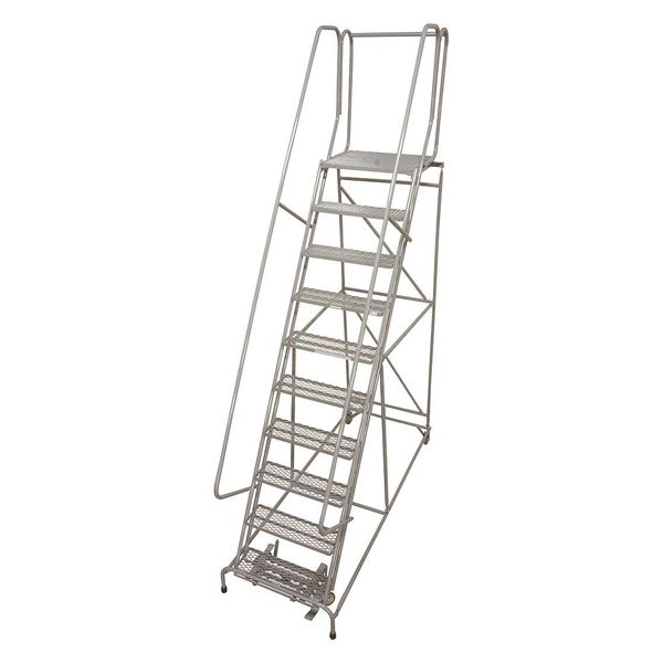 143 in H Steel Rolling Ladder, 11 StepsSKU G5206708Categories Material HandlingDescription Rolling Ladder, Material Steel, Platform Height 110 in, Handrails Included Yes, Handrail Height 30 in, Overall Height 143 in, Number of Steps 11, Unassembled, Load Capacity 450 lb, Step Tread Expanded Metal, Platform Depth 21 in, Platform Width 24 in, Bottom Width 32 in, Base Depth 87 in, Overall Width 32 in, Climbing Angle 59 Degrees , Step Depth 7 in, Step Width 24 in, Ladder Actuation Weight Activated Step Lock, Finish Powder Coated, Color Gray, Standards ANSI, OSHAgraingerSKU: 41LG34, mscSKU: , zoro_no: G5206708, mongo_id: 65bbee24526e052139af0a6e
