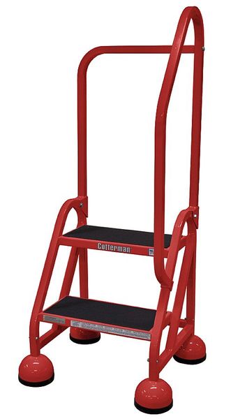 48 in H Steel Rolling Ladder, 2 StepsSKU G6254701Categories Material HandlingDescription Rolling Ladder, Material Steel, Platform Height 18 in, Handrails Included Yes, Handrail Height 30 in, Overall Height 48 in, Number of Steps 2, Unassembled, Load Capacity 450 lb, Step Tread Antislip Vinyl, Platform Depth 8 in, Platform Width 16 in, Bottom Width 22 in, Base Depth 20 in, Overall Width 22 in, Climbing Angle 59 Degrees , Step Depth 8 in, Step Width 16 in, Ladder Actuation Weight Activated Step Lock, Finish Powder Coated, Color Red, Standards ANSI, OSHA, Includes Double HandrailsgraingerSKU: 8YF82, mscSKU: , zoro_no: G6254701, mongo_id: 65bbedfe526e052139ae24db