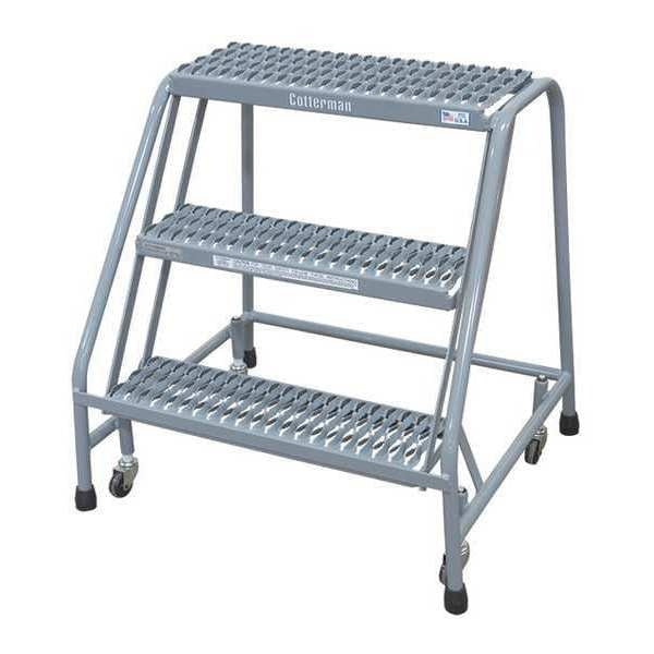 Rolling Ladder, Steel, 30"H., Gray, Base Depth: 36"SKU G0895813Categories Material HandlingDescription Step Stool Product Group Rolling Step, Number of Steps 3, Overall Height 30 in, Material Steel, Load Capacity 450 lb, Top Step Height 30 in, Top Step Depth 7 in, Bottom Width 30 in, Base Depth 36 in, Color Gray, Finish Powder Coated, Standards OSHA 1910.29 and ANSI A14.7, Ladder Actuation Spring-Loaded Casters, Step Tread Expanded Metal, Step Width 24 in$728.74 / eachWeb price -