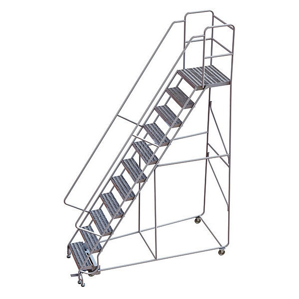 143 in H Steel Rolling Ladder, 11 StepsSKU G9839645Categories Material HandlingDescription Rolling Ladder, Material Steel, Platform Height 110 in, Handrails Included Yes, Handrail Height 30 in, Overall Height 143 in, Number of Steps 11, Unassembled, Load Capacity 450 lb, Step Tread Expanded Metal, Platform Depth 14 in, Platform Width 24 in, Bottom Width 32 in, Base Depth 80 in, Overall Width 32 in, Climbing Angle 59 Degrees , Step Depth 7 in, Step Width 24 in, Ladder Actuation Foot Activated Step Lock, Finish Powder Coated, Color Gray, Standards ANSI, OSHAgraingerSKU: 9J230, mscSKU: , zoro_no: G9839645, mongo_id: 65bbedfe526e052139ae24ae