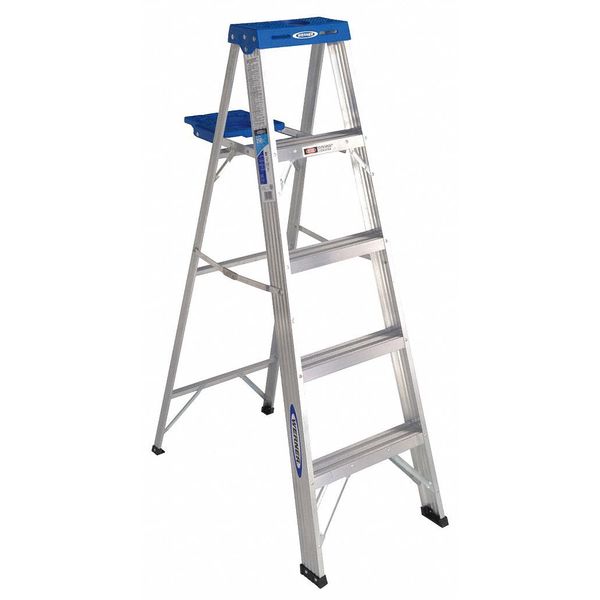 5 ft Aluminum StepladderSKU G7456793Categories Material HandlingDescription Stepladder, Material Aluminum, ANSI Type I, Ladder Height 5 ft, Load Capacity 250 lb, Number of Steps 4, Base Spread 35 1/2 in, Bottom Width 20 in, Step Depth 3 in, Step Tread Ribbed, Series 360, Includes Pail Shelf, Rung/Step Spacing 12 ingraingerSKU: 41D305, mscSKU: , zoro_no: G7456793, mongo_id: 65bbedfe526e052139ae2478