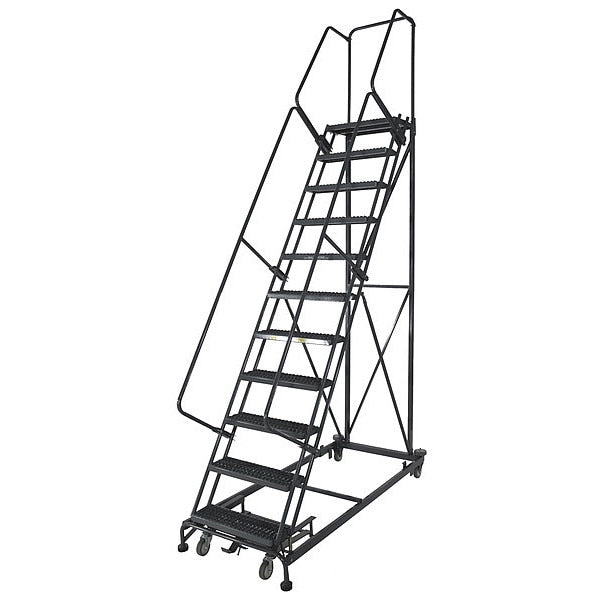 133 in H Steel Rolling Ladder, 10 StepsSKU G5205761Categories Material HandlingDescription Rolling Ladder, Material Steel, Platform Height 100 in, Handrails Included Yes, Handrail Height 30 in, Overall Height 133 in, Number of Steps 10, Unassembled, Load Capacity 800 lb, Step Tread Perforated, Platform Depth 14 in, Platform Width 24 in, Bottom Width 32 in, Base Depth 74 in, Overall Width 32 in, Climbing Angle 59 Degrees , Step Depth 7 in, Step Width 24 in, Ladder Actuation Weight Activated Step Lock, Finish Powder Coated, Color Gray, Standards ANSI, OSHAgraingerSKU: 41LH45, mscSKU: , zoro_no: G5205761, mongo_id: 65bbedfe526e052139ae249f