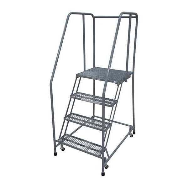 70 in H Steel Rolling Ladder, 4 StepsSKU G0998658Categories Material HandlingDescription Rolling Ladder, Material Steel, Platform Height 40 in, Handrails Included Yes, Handrail Height 30 in, Overall Height 70 in, Number of Steps 4, Unassembled, Load Capacity 450 lb, Step Tread Expanded Metal, Platform Depth 20 in, Platform Width 16 in, Bottom Width 21 in, Base Depth 57 in, Overall Width 21 in, Climbing Angle 59 Degrees , Step Depth 7 in, Step Width 16 in, Ladder Actuation Weight Activated Step Lock, Finish Powder Coated, Color Gray, Standards ANSI, OSHA, Rear Exit NograingerSKU: 21UV74, mscSKU: , zoro_no: G0998658, mongo_id: 65bbea4a22d7a989a99a61eb