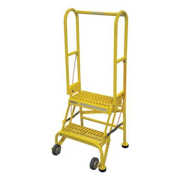 50 in H Steel Rolling Ladder, 2 StepsSKU G1002946Categories Material HandlingDescription Rolling Ladder, Material Steel, Platform Height 20 in, Handrails Included Yes, Handrail Height 30 in, Overall Height 50 in, Number of Steps 2, Assembled, Load Capacity 350 lb, Step Tread Antislip Vinyl, Platform Depth 10 in, Platform Width 16 in, Bottom Width 21 in, Base Depth 49 in, Overall Width 21 in, Climbing Angle 59 Degrees , Step Depth 7 in, Step Width 16 in, Ladder Actuation None, Finish Powder Coated, Color Yellow, Standards ANSI, OSHA, Rear Exit NograingerSKU: 21VF37, mscSKU: , zoro_no: G1002946, mongo_id: 65bbea4a22d7a989a99a61f8