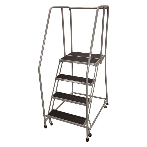 70 in H Steel Rolling Ladder, 4 StepsSKU G2155959Categories Material HandlingDescription Rolling Ladder, Material Steel, Platform Height 40 in, Handrails Included Yes, Handrail Height 30 in, Overall Height 70 in, Number of Steps 4, Assembled, Load Capacity 450 lb, Step Tread Antislip Vinyl, Platform Depth 30 in, Platform Width 24 in, Bottom Width 30 in, Base Depth 51 in, Overall Width 30 in, Climbing Angle 59 Degrees , Step Depth 7 in, Step Width 24 in, Ladder Actuation Weight Activated Step Lock, Finish Powder Coated, Color Gray, Standards ANSI, OSHA, Includes Ladder InstructionsgraingerSKU: 45CJ46, mscSKU: , zoro_no: G2155959, mongo_id: 65bbea4a22d7a989a99a61ff