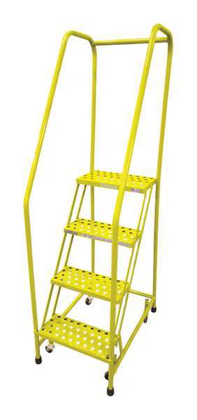 SKU G0996147Categories Material HandlingDescription Rolling Ladder, Material Steel, Platform Height 40 in, Handrails Included Yes, Handrail Height 30 in, Overall Height 70 in, Number of Steps 4, Assembled, Load Capacity 450 lb, Step Tread Perforated, Platform Depth 10 in, Platform Width 16 in, Bottom Width 20 in, Base Depth 31 in, Overall Width 20 in, Climbing Angle 59 Degrees , Step Depth 7 in, Step Width 16 in, Ladder Actuation Weight Activated Step Lock, Finish Powder Coated, Color Yellow, Standards ANSI, OSHA, Rear Exit NograingerSKU: 21UP91, mscSKU: , zoro_no: G0996147, mongo_id: 65bbea4a22d7a989a99a61d2